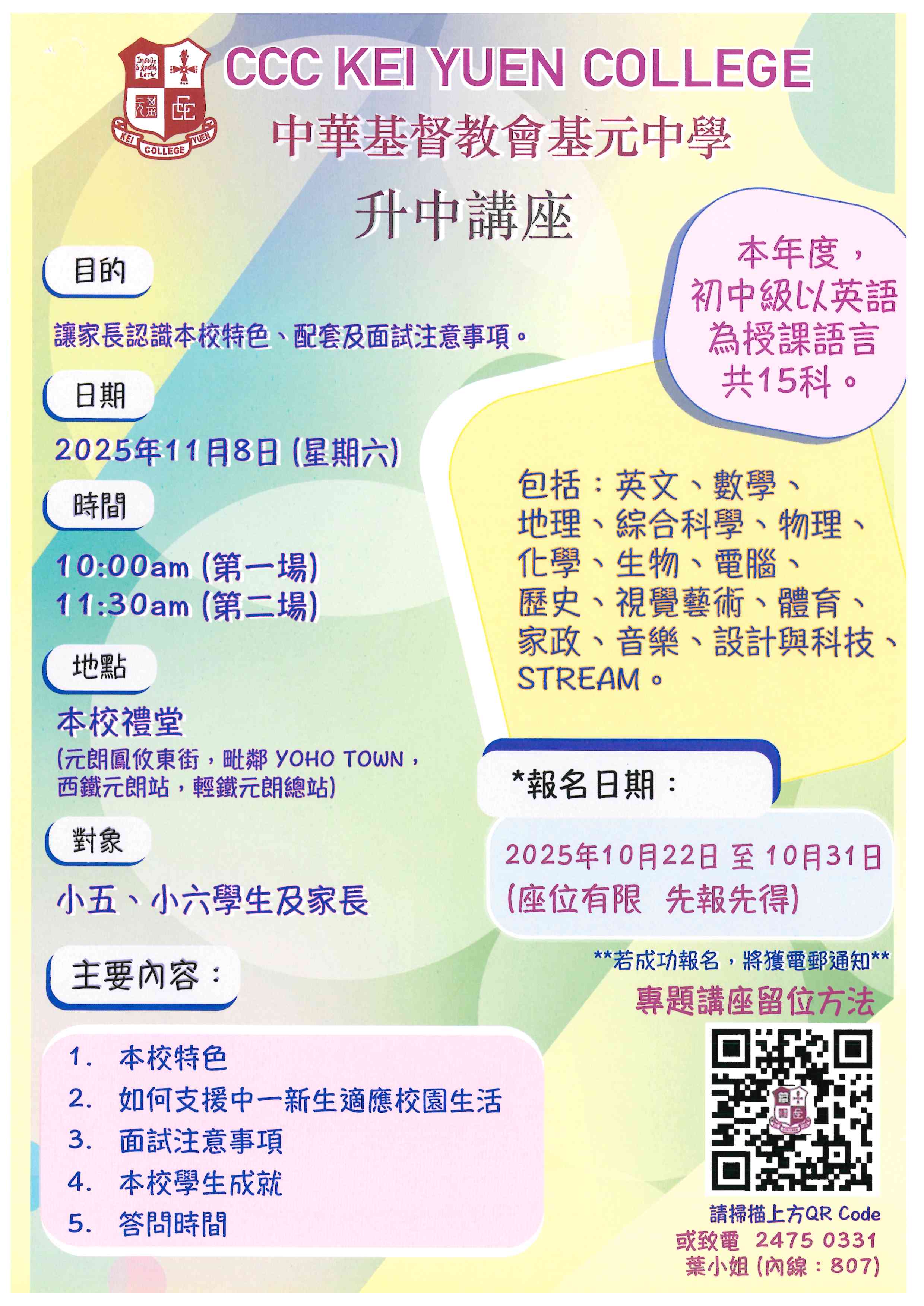 2025年11月8日 | 中華基督教會基元中學 – 升中講座 |
